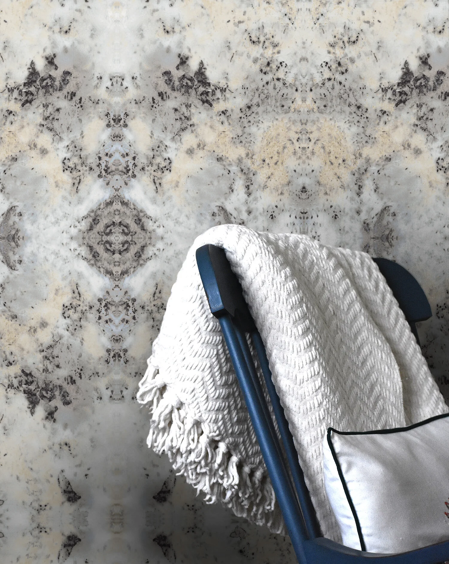 Blueberry Crumble is directly derived from one of our hand dyed textiles created with a combination of recycled rose petals and minerals. A bold statement pattern, it is great for an accent wall or lively space.