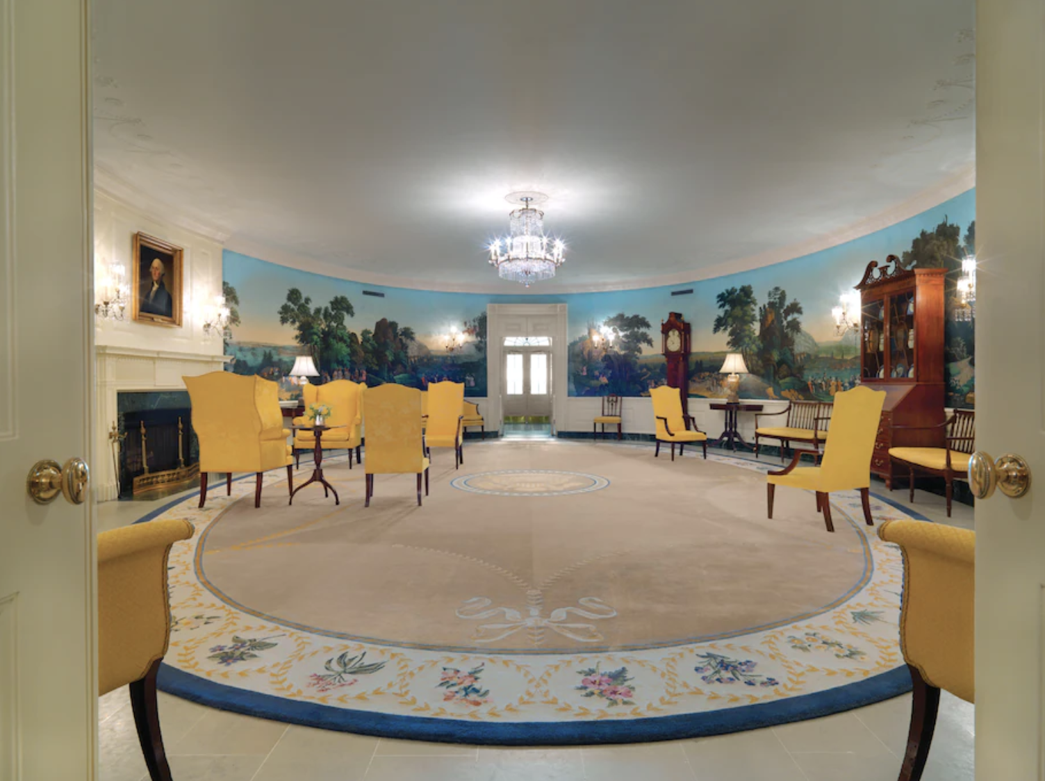 White House Diplomatic Reception Area. Design based on 50 State flowers. Worked closely with White House curator and designer to develop color palette. Silk and Wool